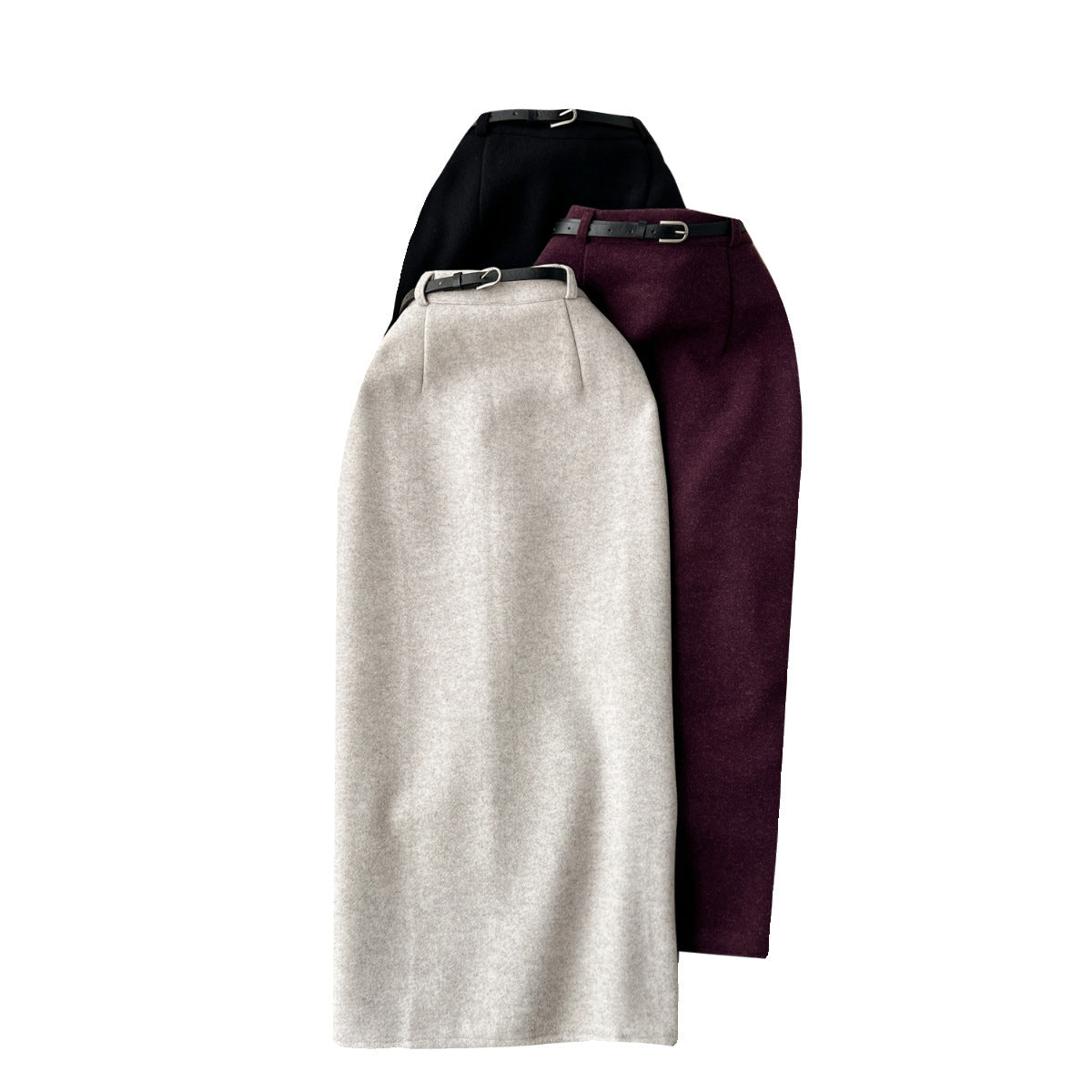 Jupe fourreau fendue taille haute en laine à une seule étape