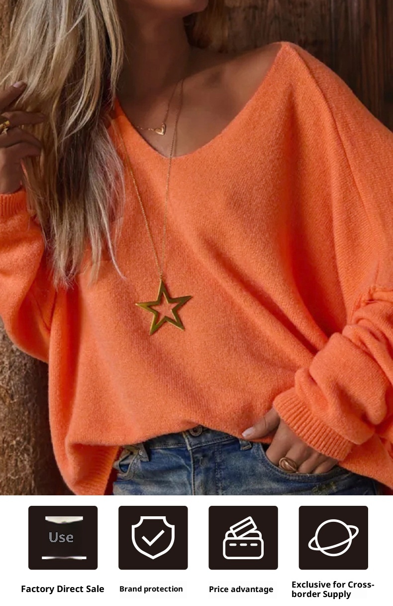 New Deep V-neck Pullover Women's Sweater