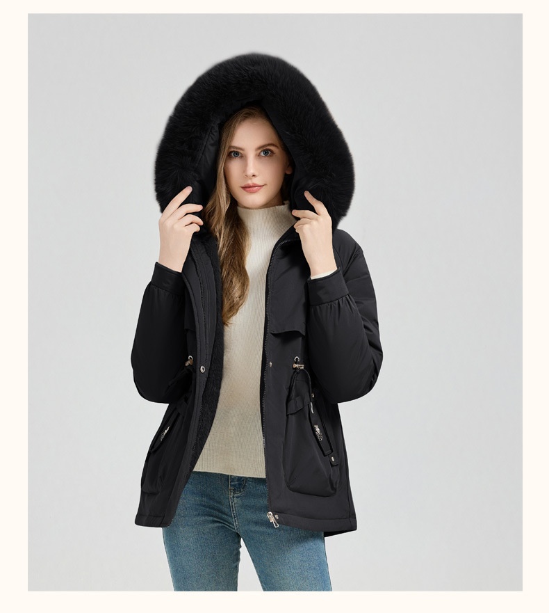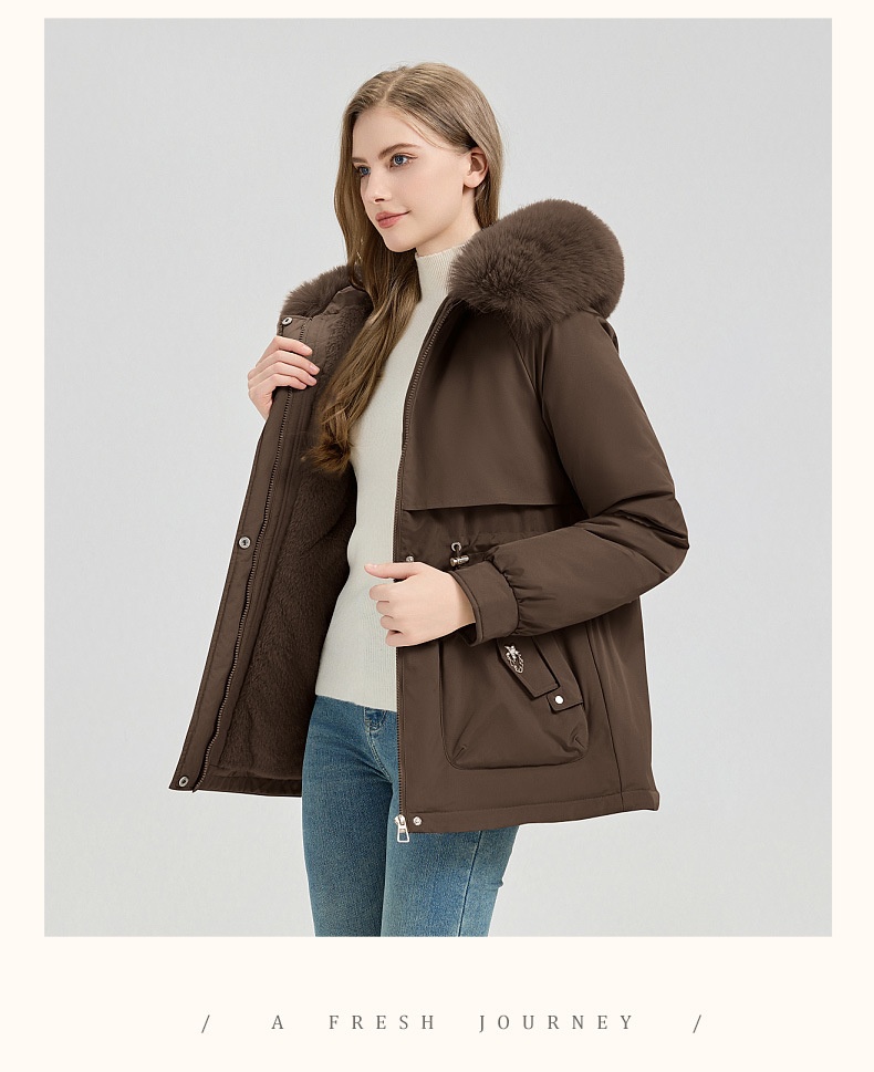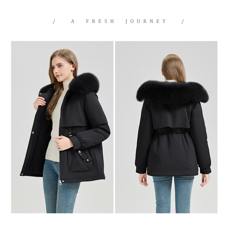 Waist Trimming Short Hooded New Big Fur Collar Coat Women's Clothing