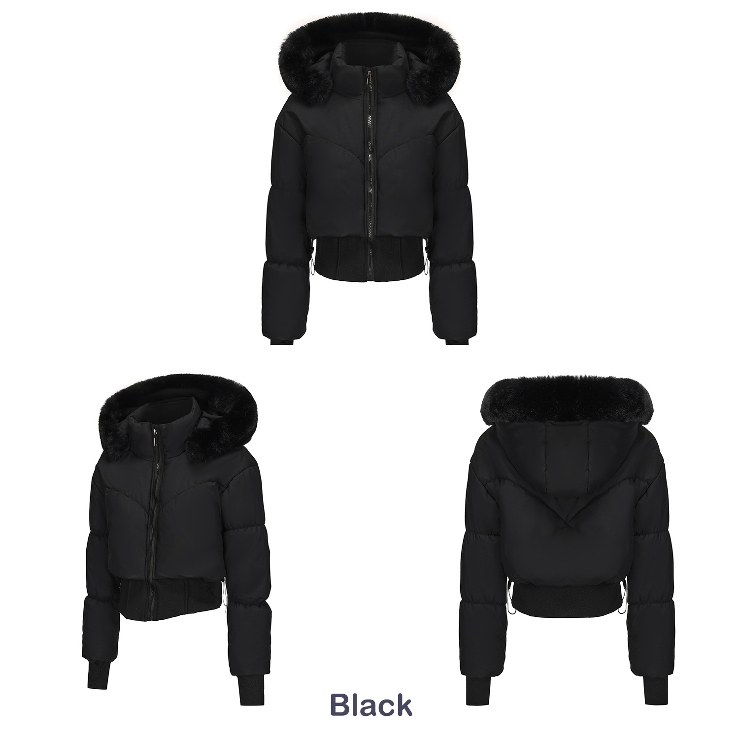 Women's Waist-tight Big Fur Collar Hooded Short Cotton Jacket